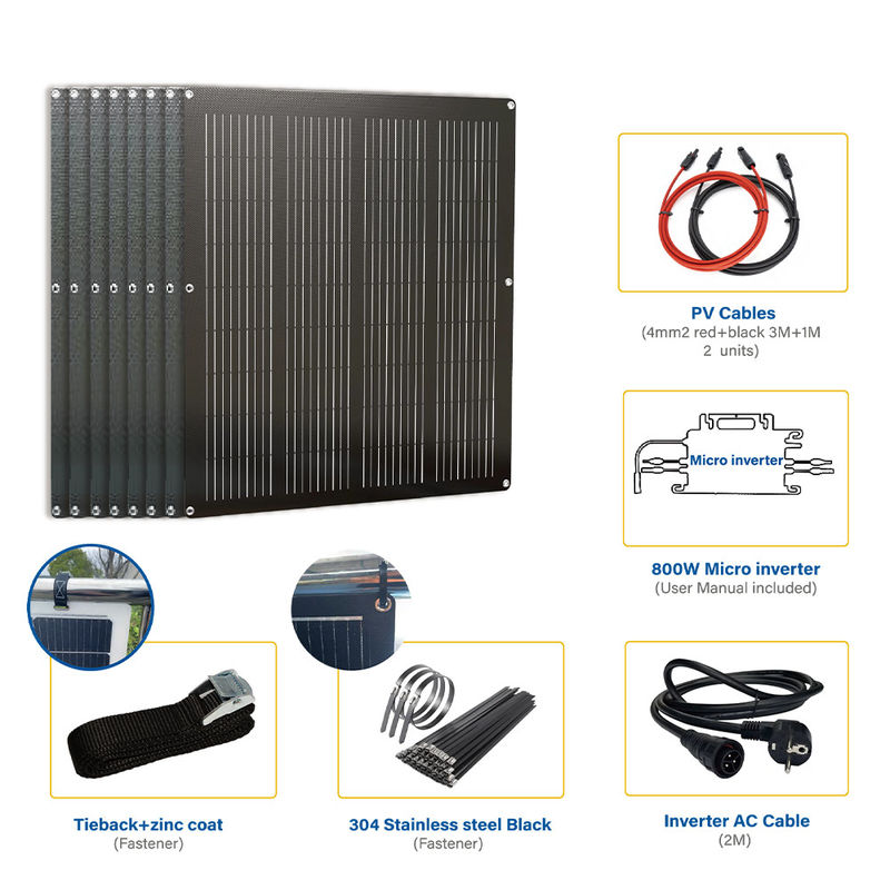 IP67 โมโนคริสตัล น้ําหนักเบา 100 วัตต์ แผ่นแสงอาทิตย์ครึ่งยืดหยุ่นโค้งสําหรับระเบียง