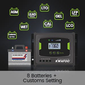 | ประเภทแบตเตอรี่ที่เหมาะสม | AGM, GEL, WET, แคลเซียม, คริสตัลโพลีด, LTO, LCO, LFP, สัญญากลาง |