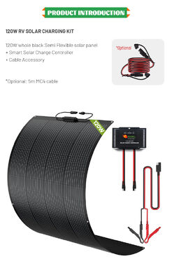 หลักของชุดชาร์จพลังแสงอาทิตย์นี้คือ แผ่นพลังแสงอาทิตย์ขนาดเบา 120W ที่มีประสิทธิภาพสูง ซึ่งเป็นตัวเลือกที่เหมาะสมสําหรับรถแคมเปอร์และรถเรือนเล็กๆ The monocrystalline Semi Flexible solar panel type used in this kit guarantees superior energy conversion rates and better performance in low-light conditions compared to other solar panel technologiesนั่นหมายความว่าคุณจะได้รับพลังงานมากขึ้น แม้แต่ในวันที่มีเมฆ หรือในช่วงเช้าและช่วงบ่ายสาย ทําให้มันเป็นส่วนประกอบที่น่าเชื่อถือของระบบพลังงานนอกเครือข่ายของคุณ